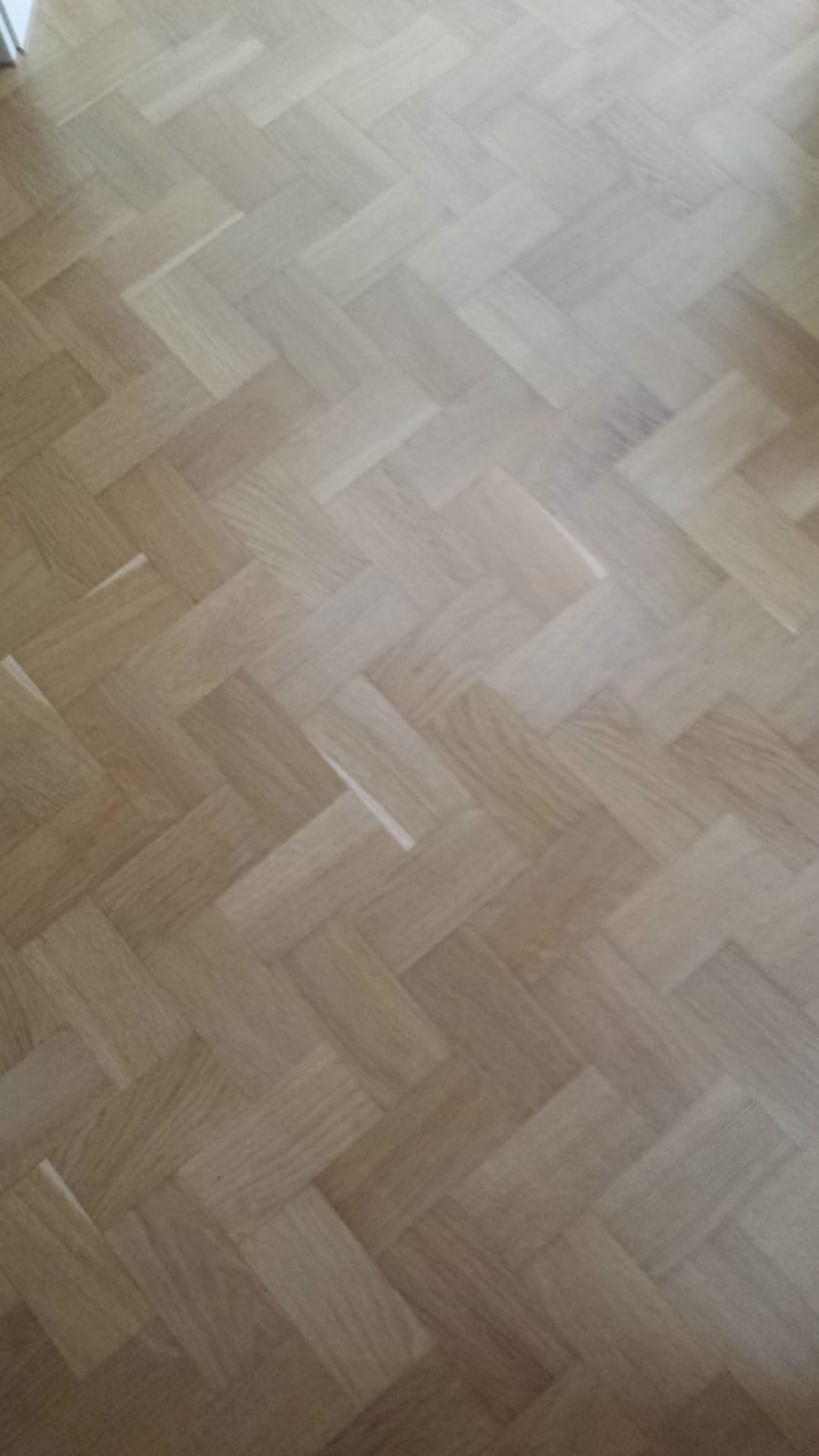 Fischgrätenparkett nach dem Schleifen und Versiegeln